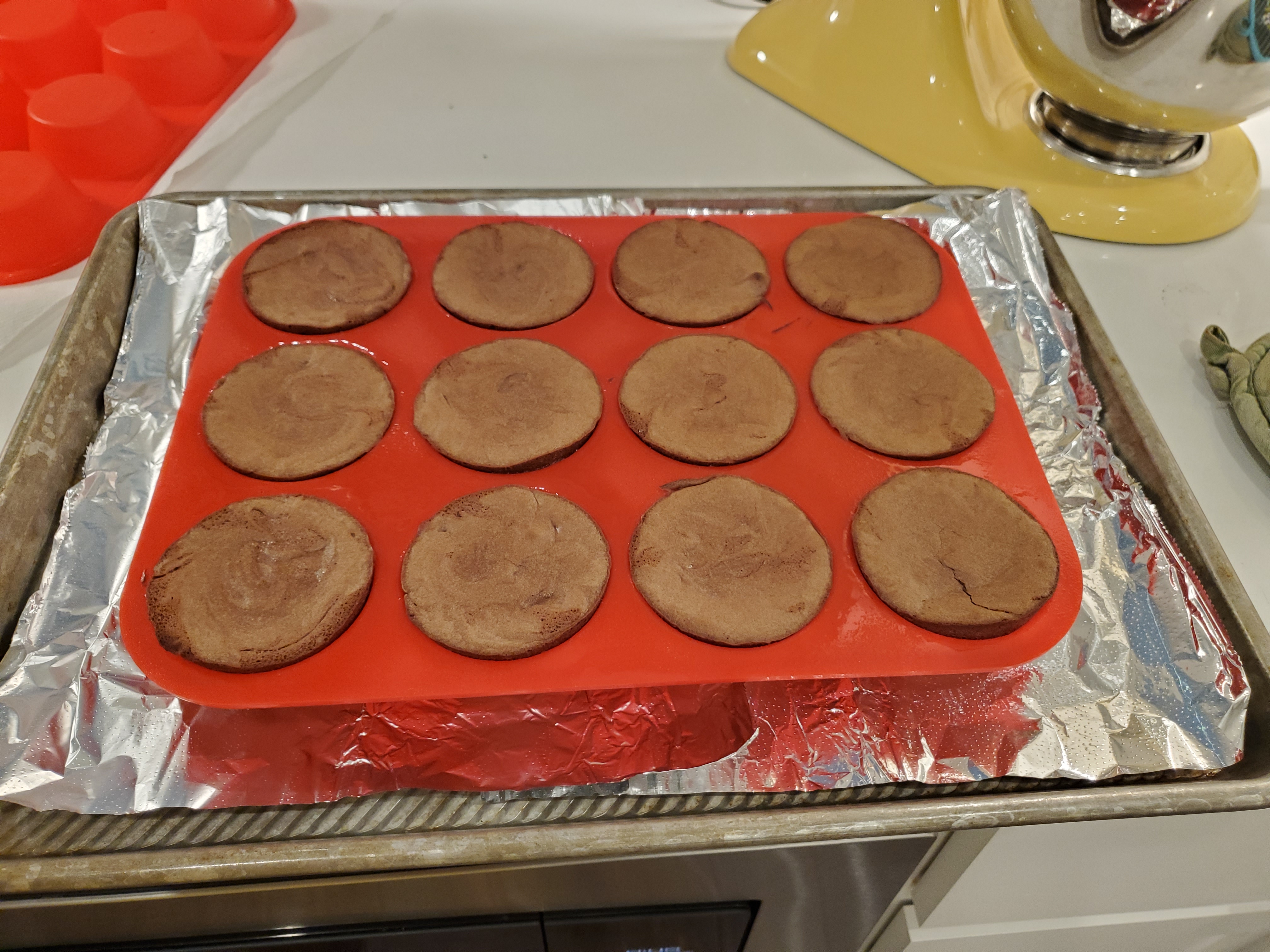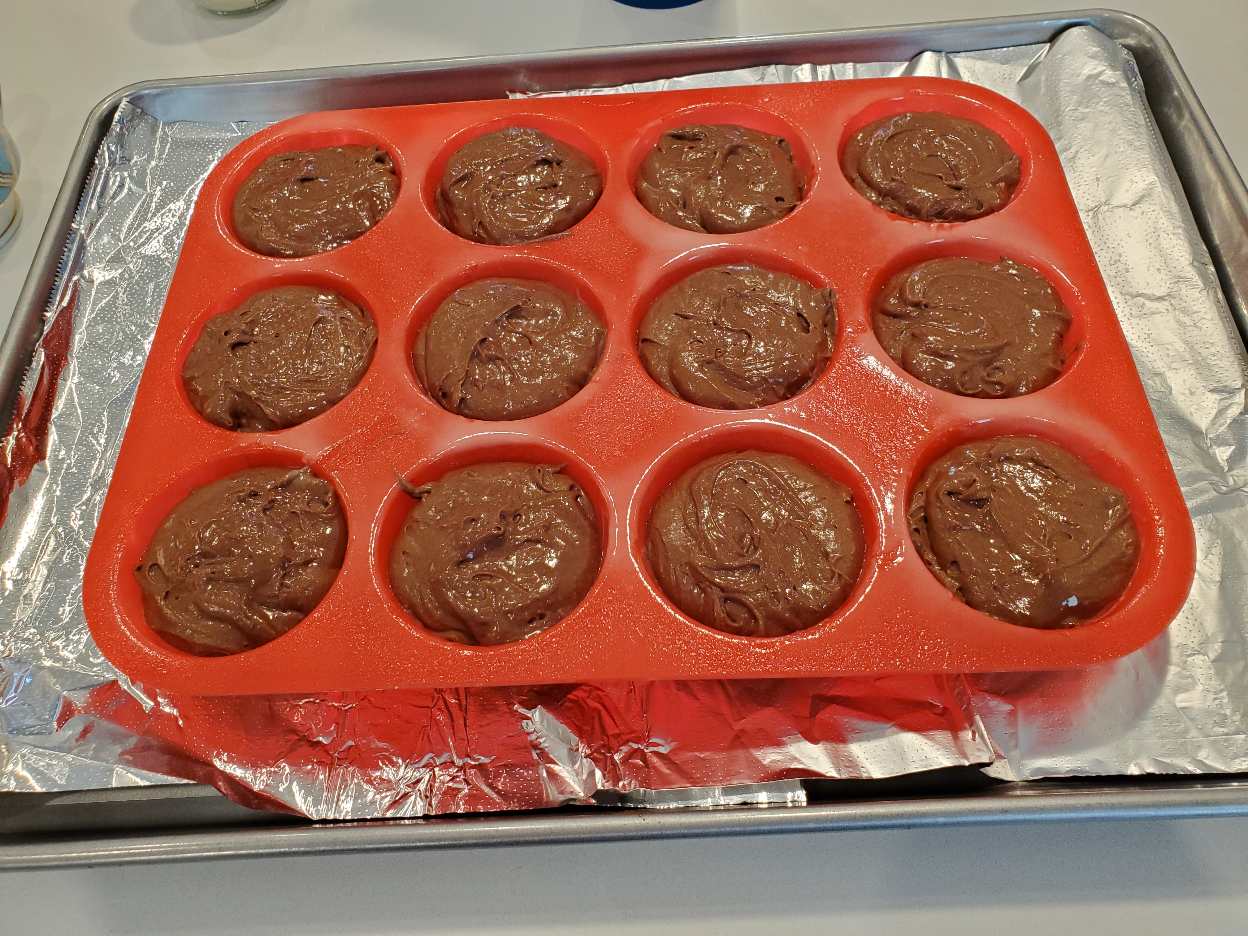 In the past I’ve done my lava cakes in ramekins, but we had 12 people for dinner on Saturday so I went looking for a recipe that was made using a muffin tin. I like to make the mix a little ahead of time, store in the fridge, and take out about half an hour before baking (generally as people are sitting down to eat their meal). This way you can have all of your baking cleaned up and enjoy dinner with the rest of the group while still having a delicious dessert timely. I found this recipe easy to make, but the transfer after baking was much more difficult due to having to transfer twice. Also, just a side note, the recipe made more batter than would fit in the 12 muffin tins.