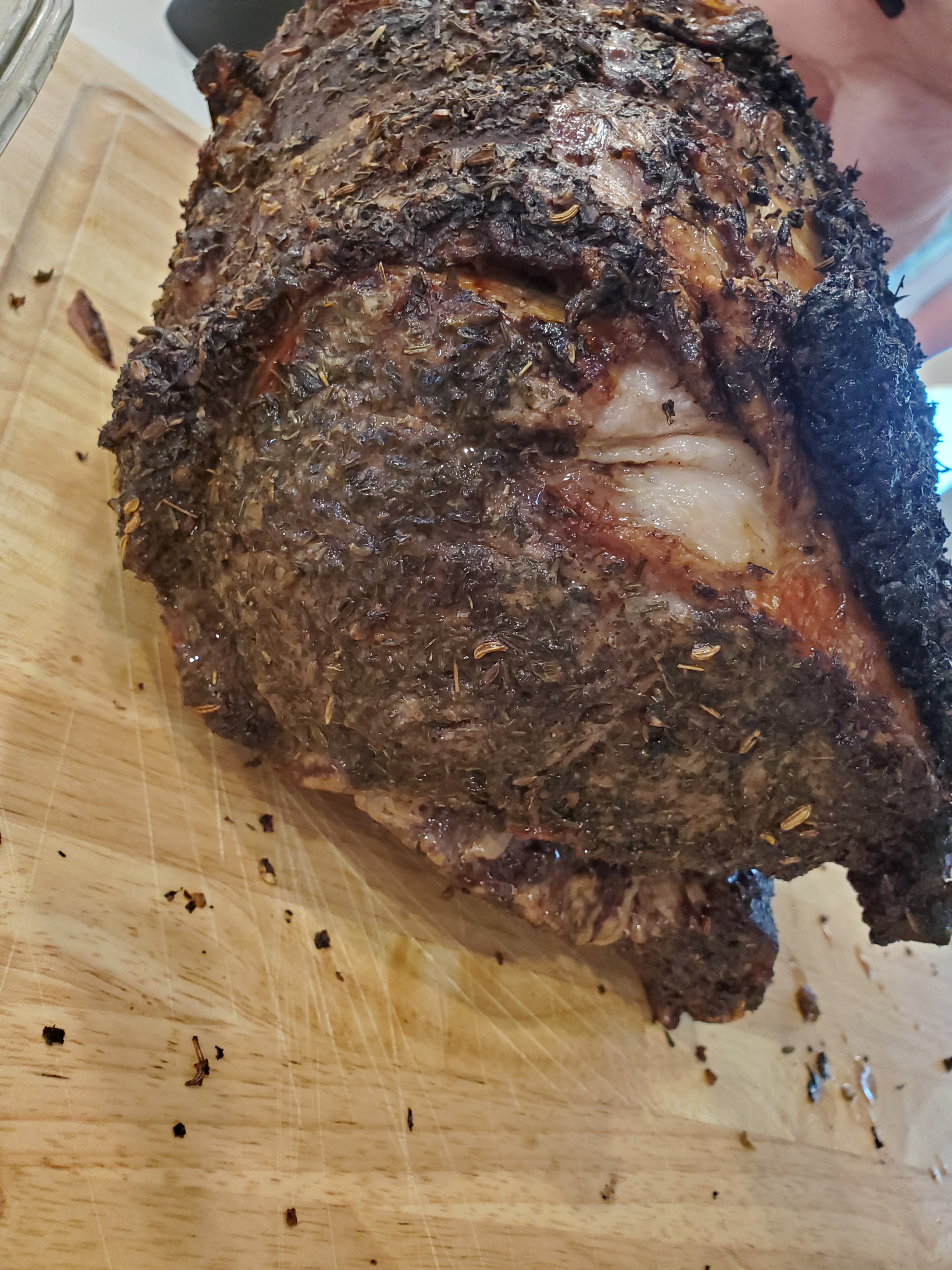 I couldn’t find the prime rib recipe I’ve used previously so I went to google. After comparing several recipes I decided to go with this one and use the recommendations in the top rated comment for turning the oven to 275 after half an hour and off with half an hour left. This resulted in a more medium than medium rare, but it was still delicious. I rubbed it with olive oil and used Herbs de Provence and salt to season. I didn’t have any beef broth for the recommended au jus so we improvised a sauce with the drippings by thickening with flour and adding red wine.